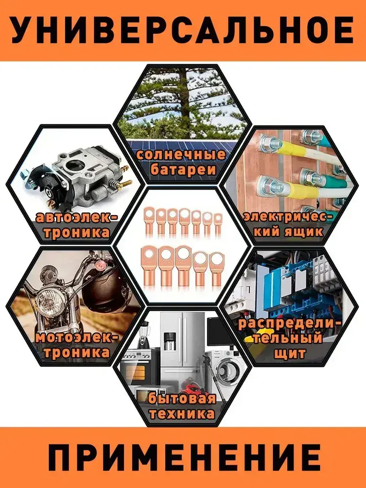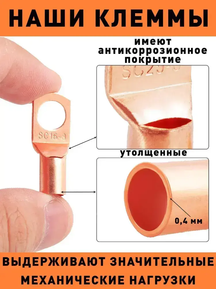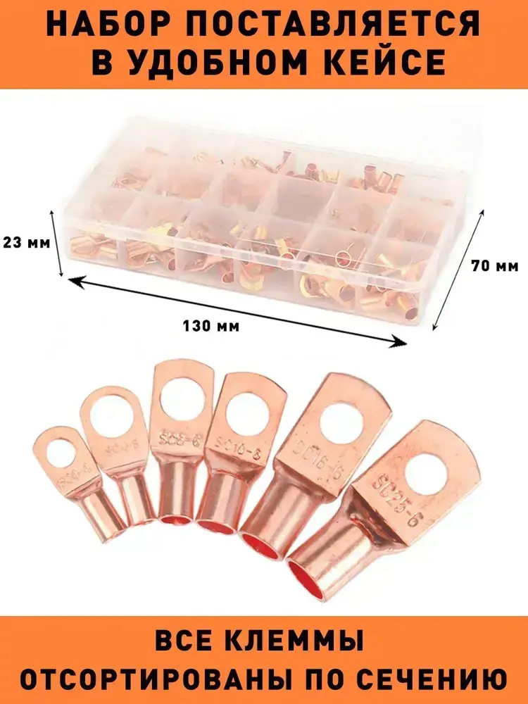 Обжимные медные клеммы типа SC 60 шт для проводов / кольцевые утолщенные / набор в кейсе 10А, 20А, 30А, 40А, 50А, 60А