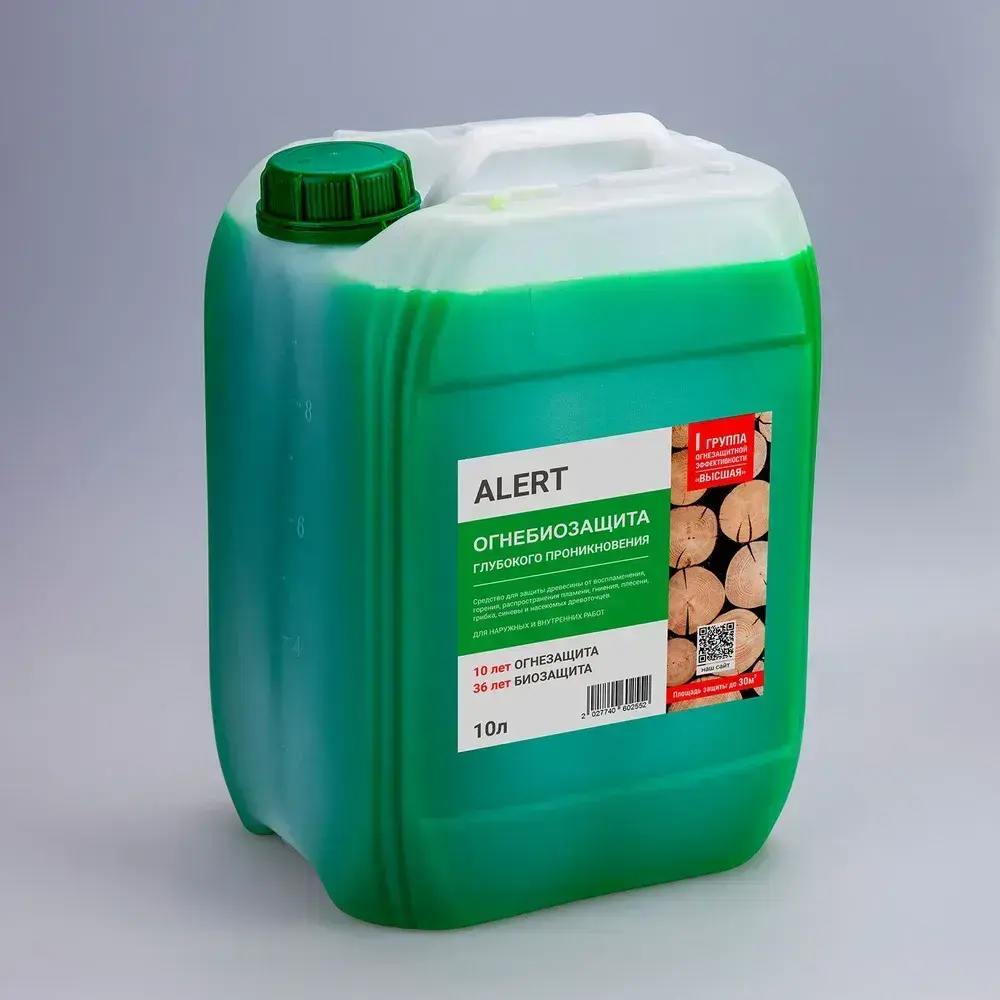 ОГНЕБИОЗАЩИТА для дерева глубокого проникновения 10л. ALERT PROF I-я группа огнезащиты по НПБ (высшая) готовый раствор для пропитки древесины защита от воспламенения, горения, гниения, плесени, грибка