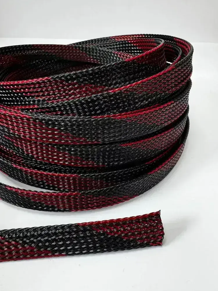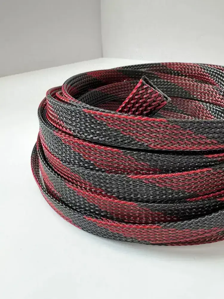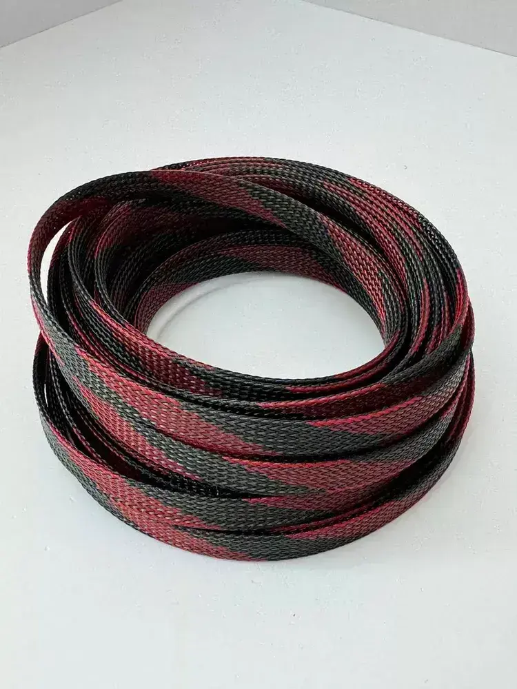 Оплетка кабельная из полиэстера змеиная кожа 10, 8-20мм, черно-красная, 10м