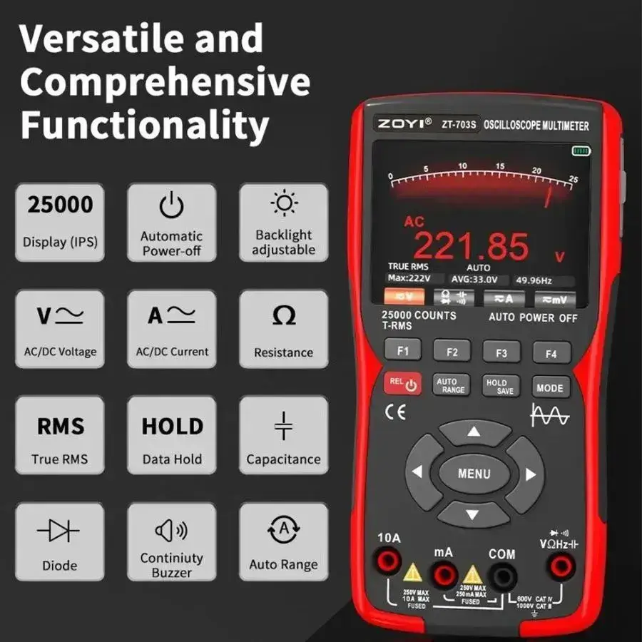 Осциллограф ZT-703S ZOYI русское меню 2-х канальный полоса 50МГц, генератор, мультиметр