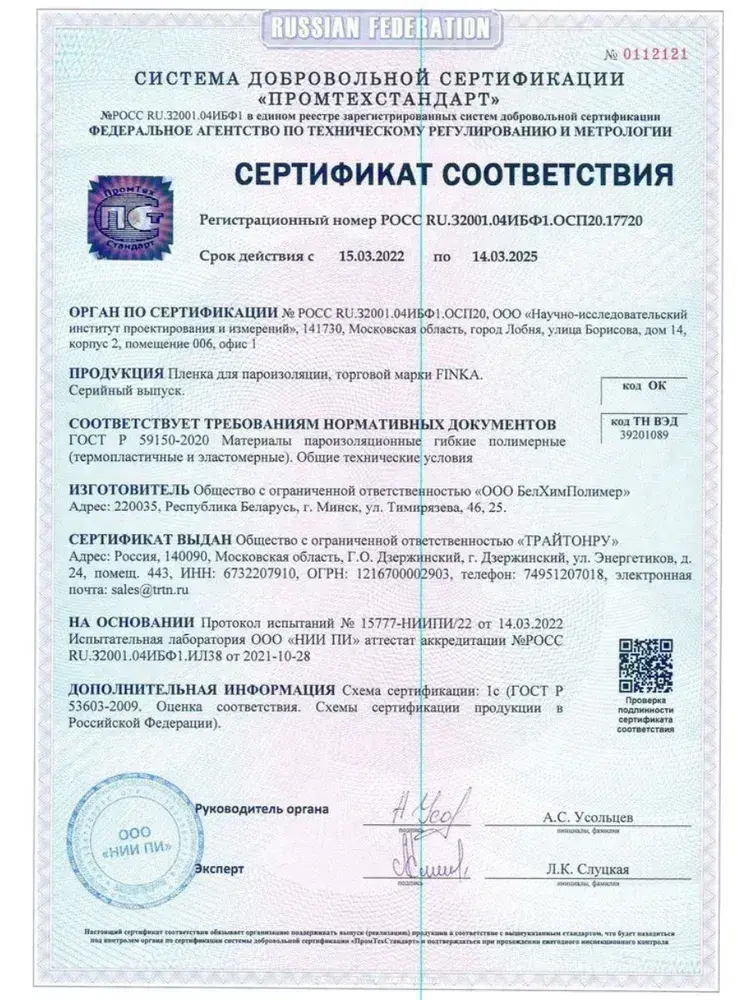 Пароизоляционная пленка 200мкм Finka Premium Plus, 1.6м * 47м (75 м2)