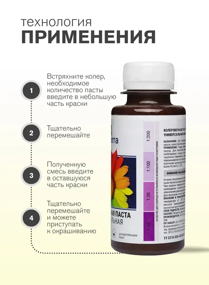Паста колеровочная универсальная ECOTERRA колер-паста сиреневый N11 100 мл