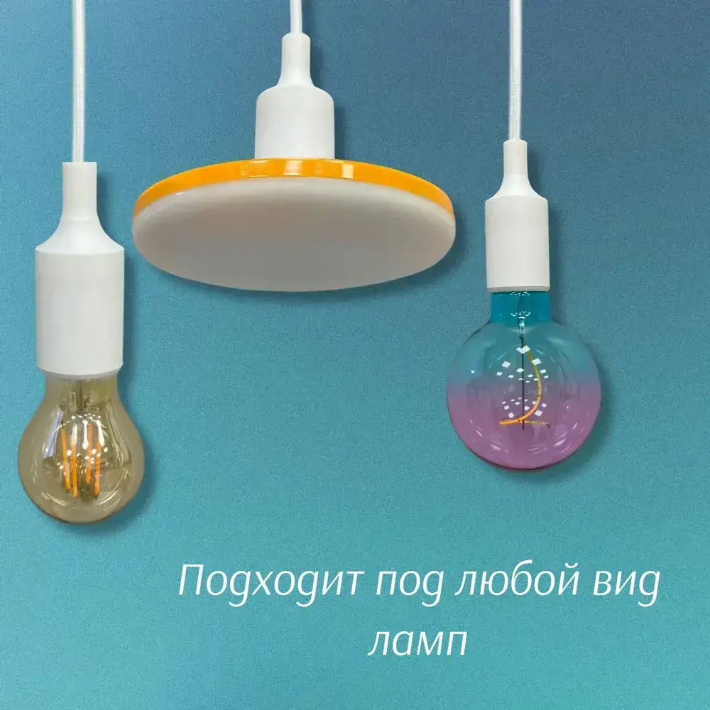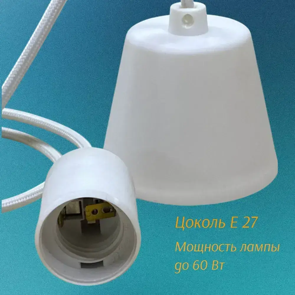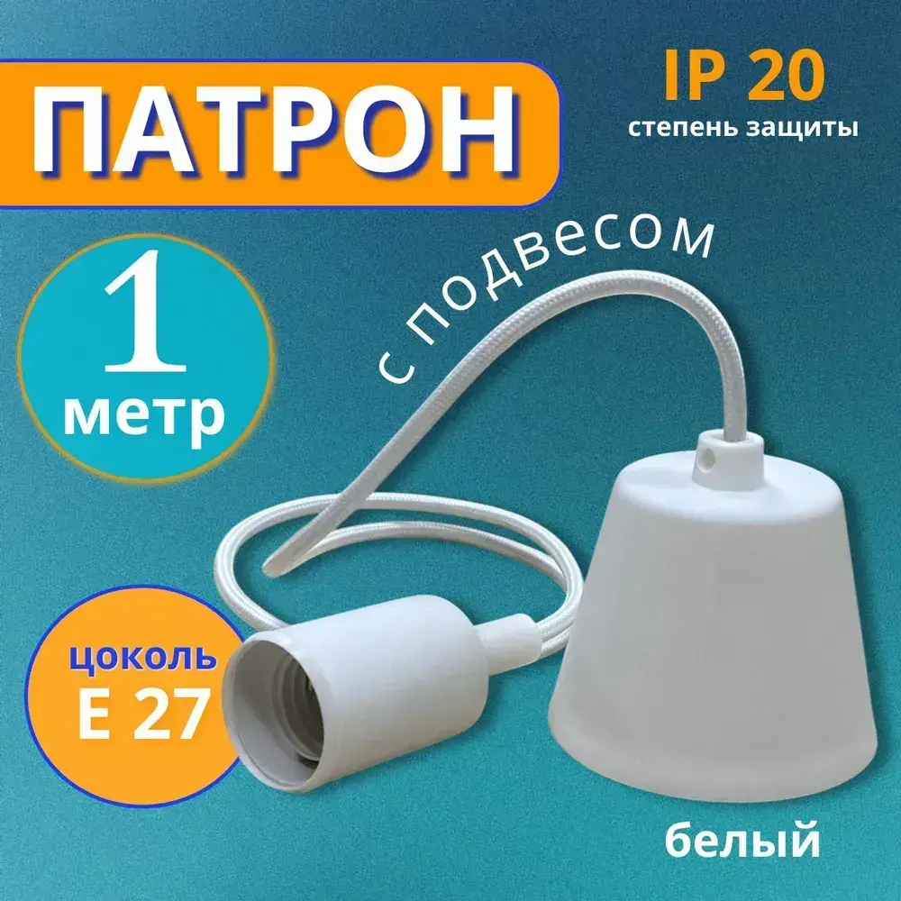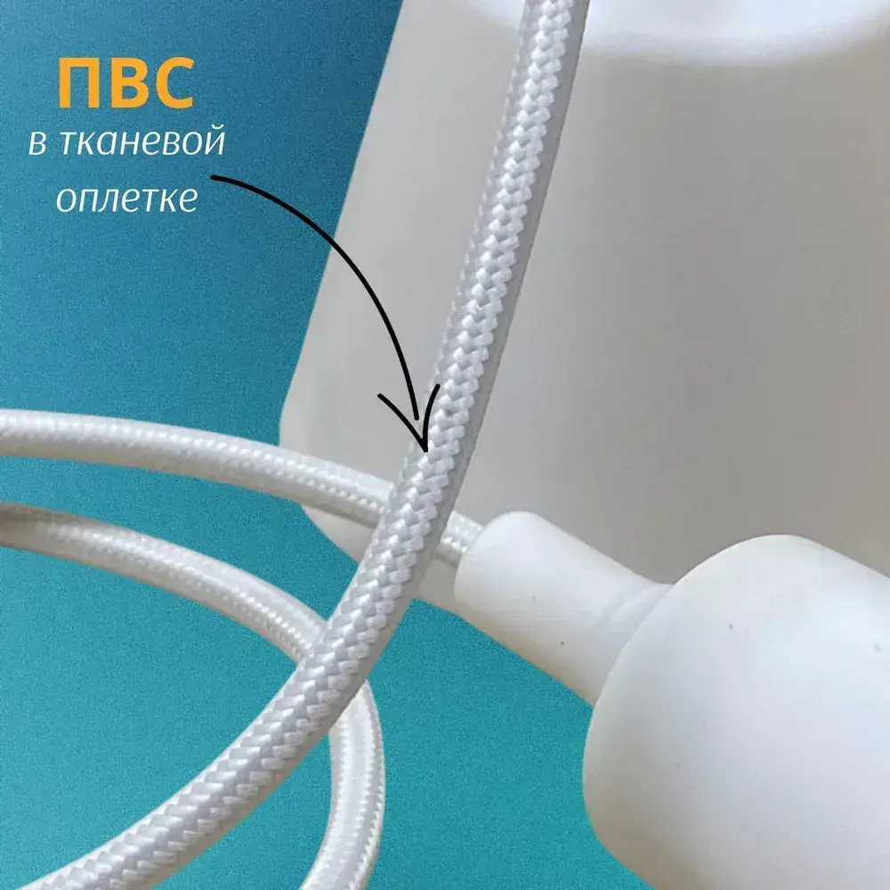 Патрон подвесной декоративный под лампу E27 белый, 1 метр