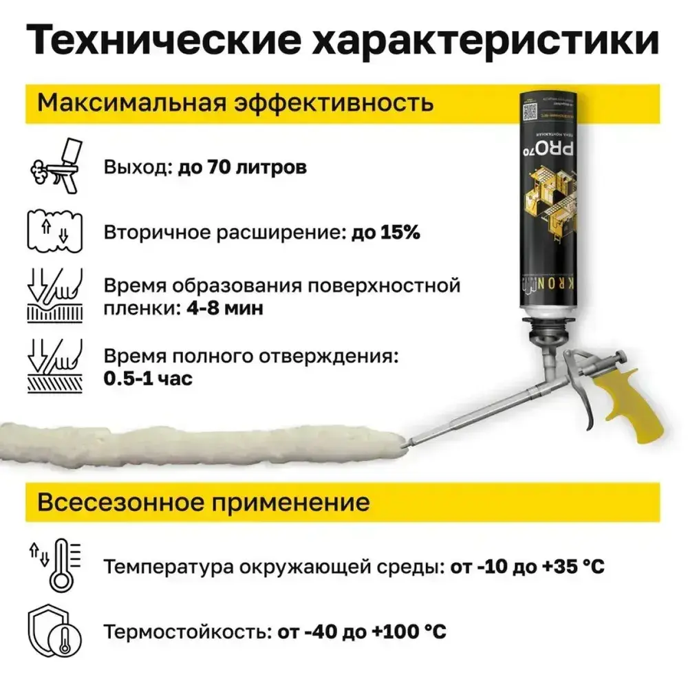 Пена монтажная профессиональная всесезонная KRONbuild Pro 70
