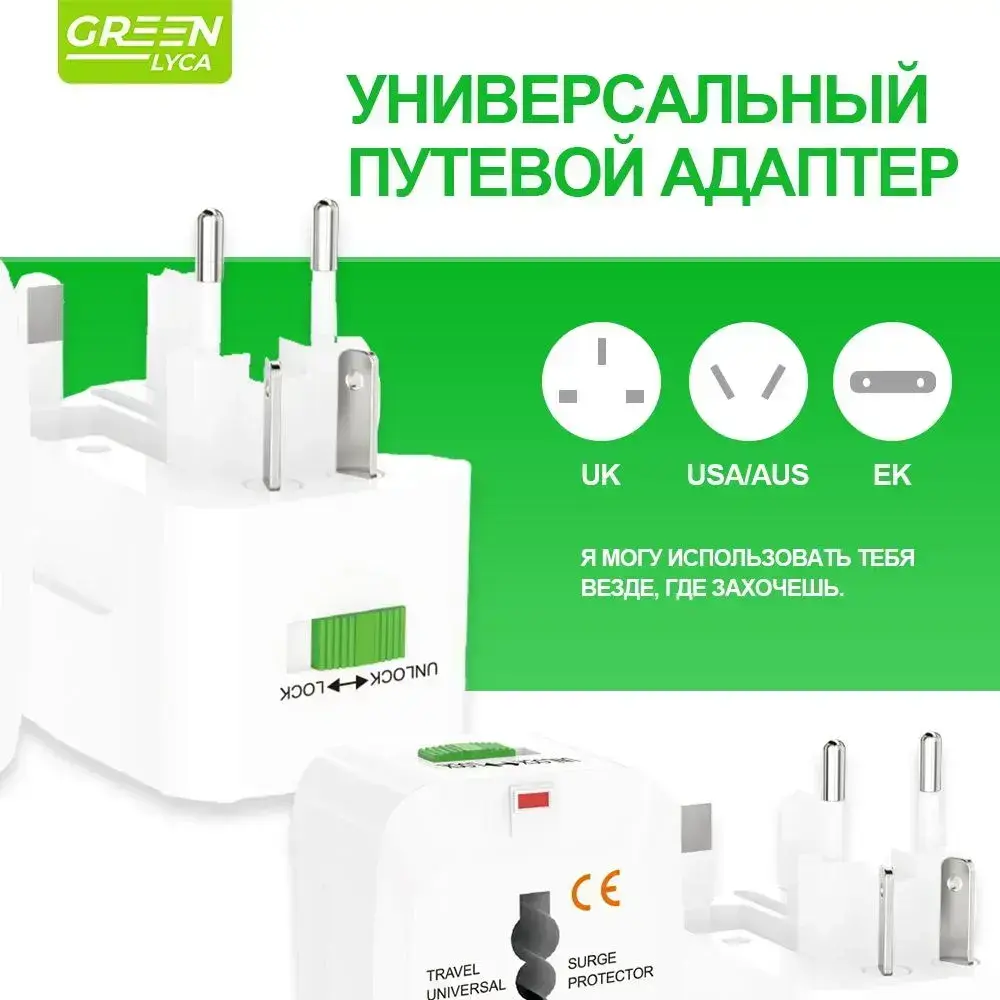 Переходник для розетки ОАЭ, Великобритании, Кипр, Малайзия, Сингапур, Гонконг. Универсальный сетевой адаптер.