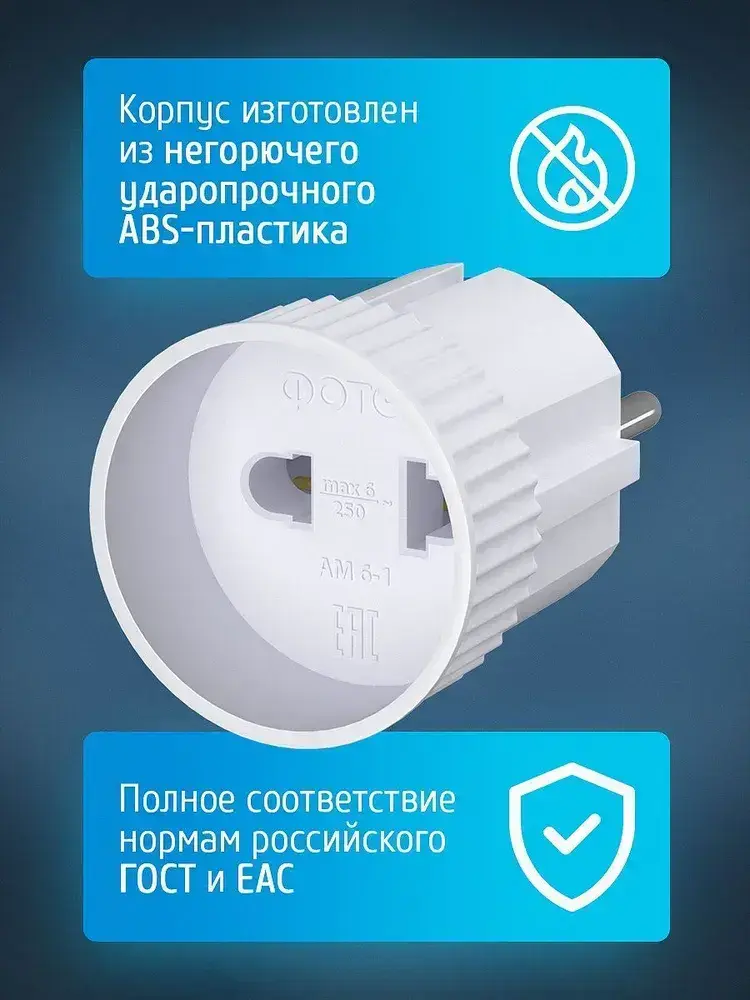 Переходник для розетки сетевой электрический ФОТОН 6А