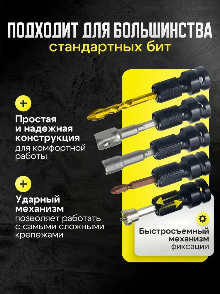 Переходник на гайковерт под биту с квадрата 1/2 на шестигранник 1/4 ударный