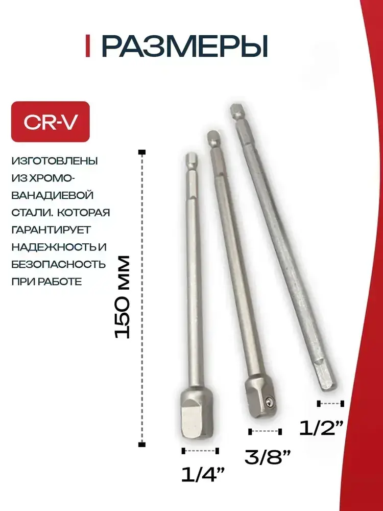 Переходники для шуруповерта под торцевые головки / Адаптер для торцевых головок 1/4", 3/8", 1/2", набор 3 шт