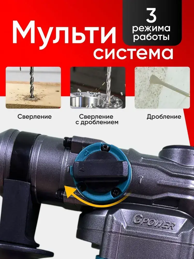 Перфоратор электрический профессиональный, 2200 вт, энергия удара 13 Дж