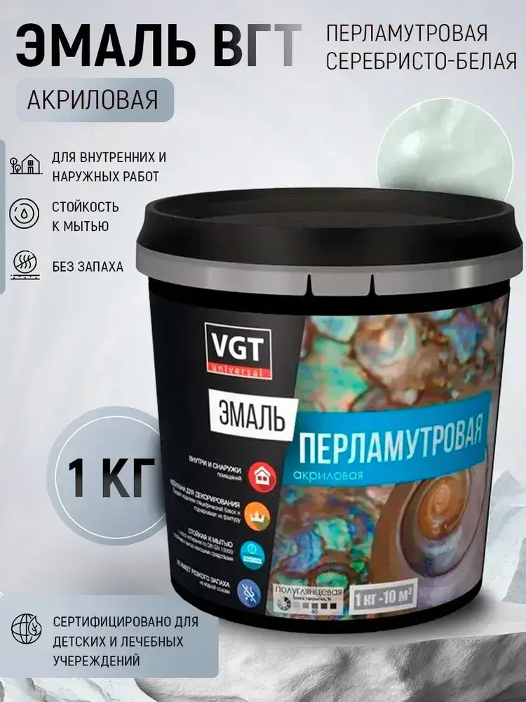 Перламутровая краска для стен и декора VGT, универсальная, серебристо-белый, 1кг