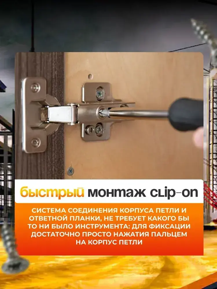 Петли мебельные с доводчиком накладные CLIP-ON 105 градусов комплект 2 шт