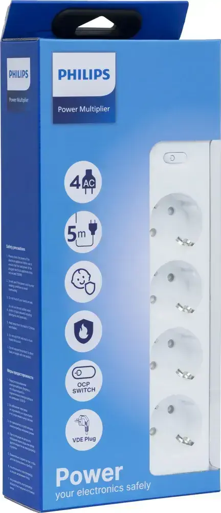Philips сетевой фильтр 4 Розетки, кабель - 3M белый