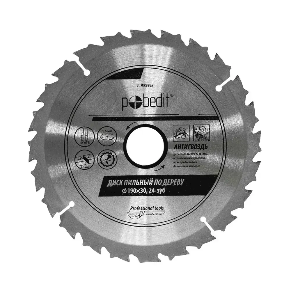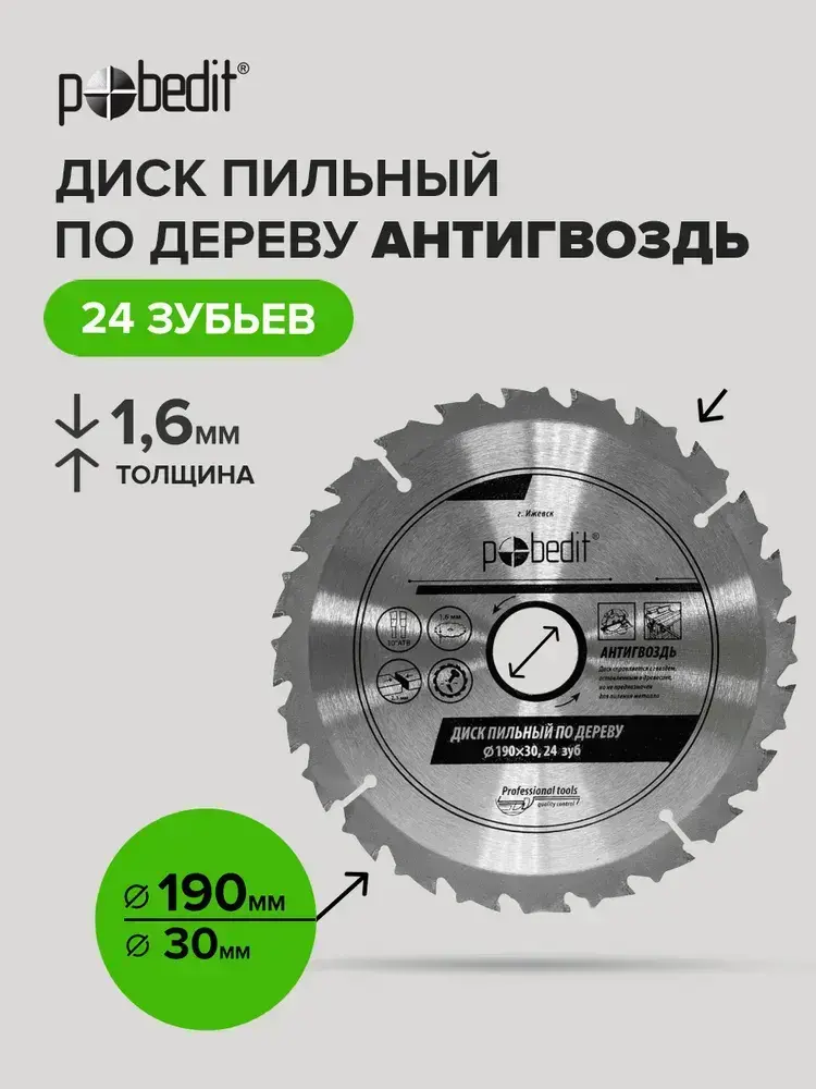 Пильный диск по дереву Антигвоздь 190 мм 24 зубьев