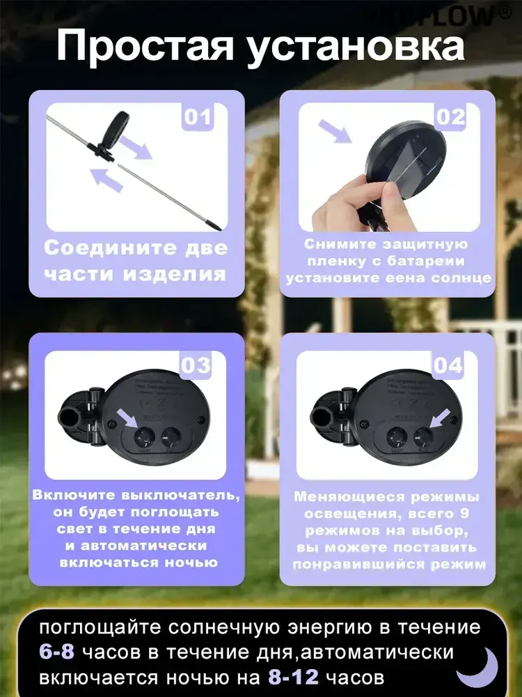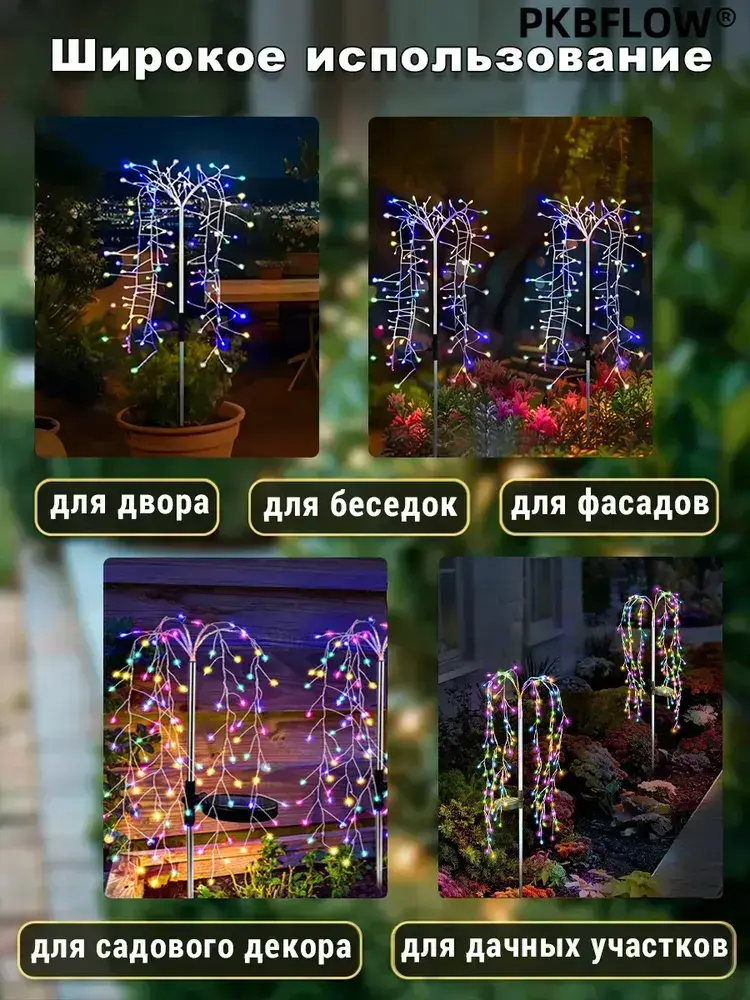 PKBFLOW Светильник садовый на солнечной батарее Ива,2 шт,множество цветов