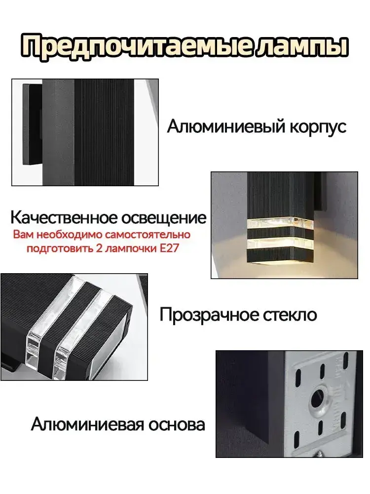 PKBFLOW Светильник уличный настенный / Бра E27 / водонепроницаемость IP65, алюминиевый корпус из нержавеющей стали,длительный срок службы, высокое качество освещения