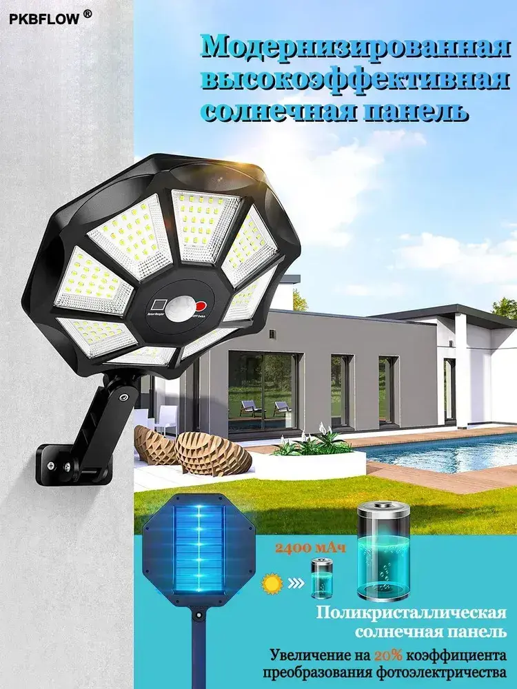 PKBFLOW Уличный светильник на солнечной батарее с датчиком движения настенный, LED, количество ламп:168шт
