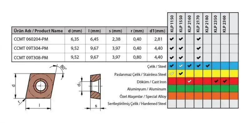 Пластина твердосплавная CCMT060204 VP15TF / 10 штук