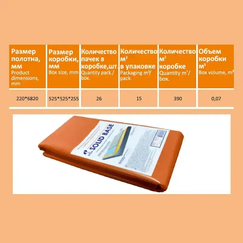 Пленка п/э гидропароизоляционная BASE, 100мкм, оранжевая, 6,82х2,2м/ уп.15м2