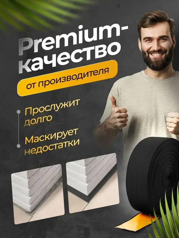 Плинтус гибкий напольный самоклеящийся 4.2 см х 3.2м чёрный