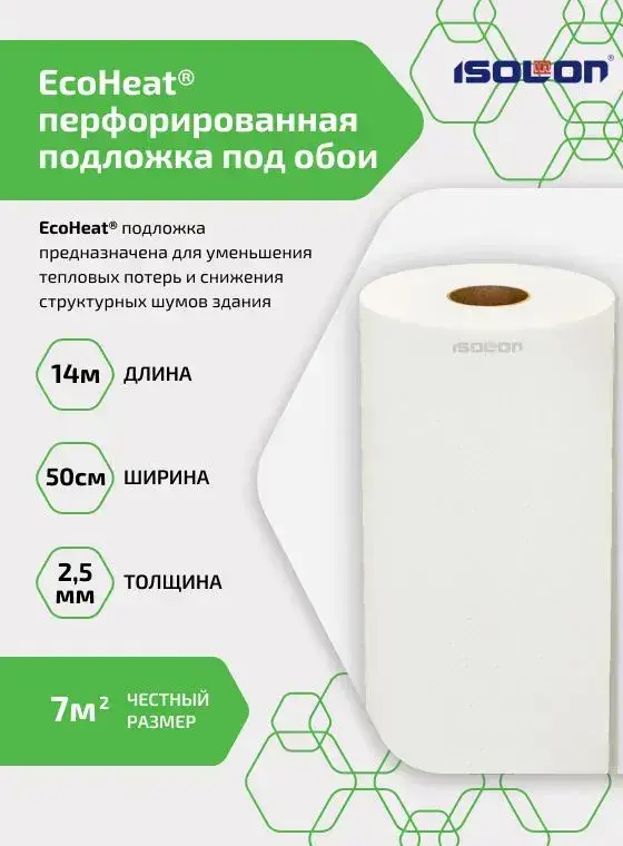 Подложка под обои перфорированная ISOLON EcoHeat, утеплитель под обои, 7 кв.м.(звукоизоляция, утепление стен)