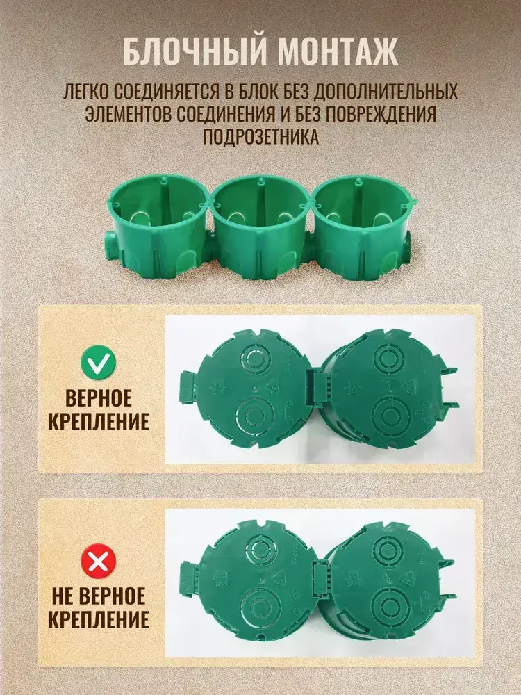 Подрозетник для бетона, 68х45, Зеленый, 20 шт.