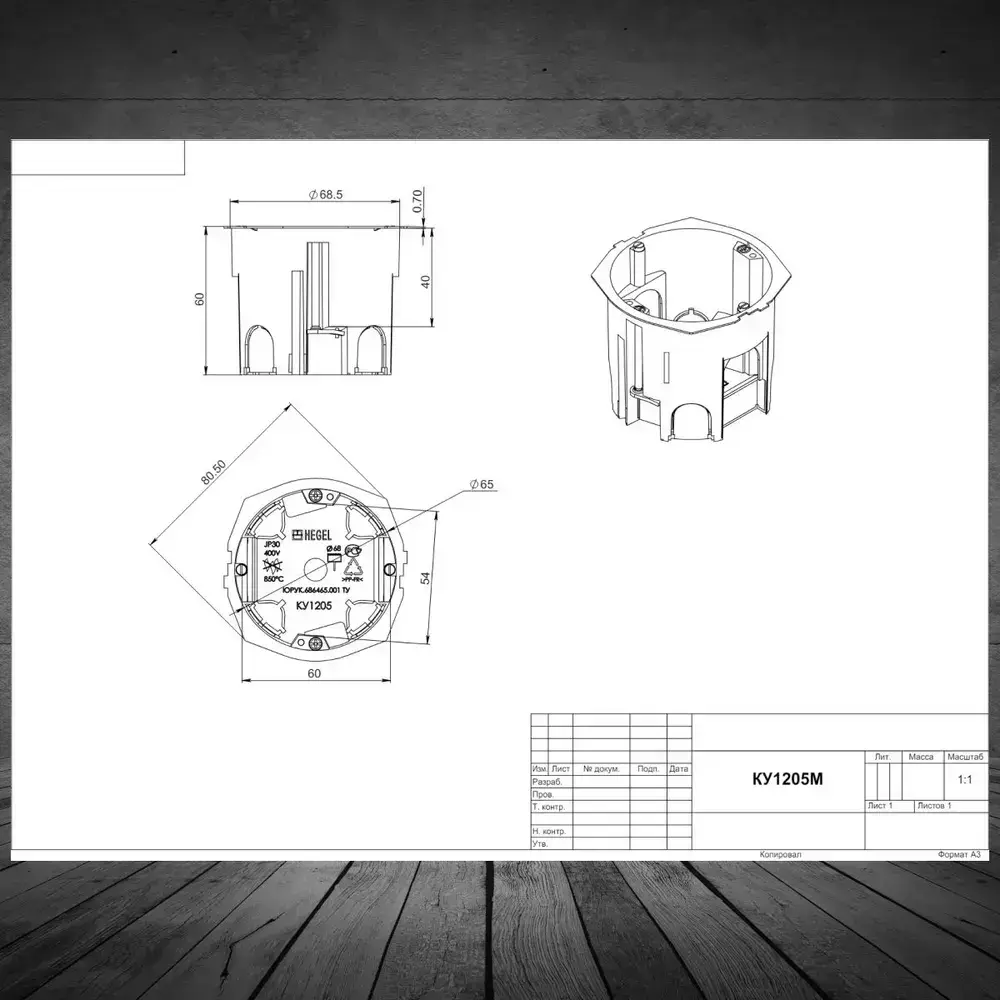 Подрозетник для гипсокартона 68х60мм с метал. лапками IP30 HEGEL-5шт