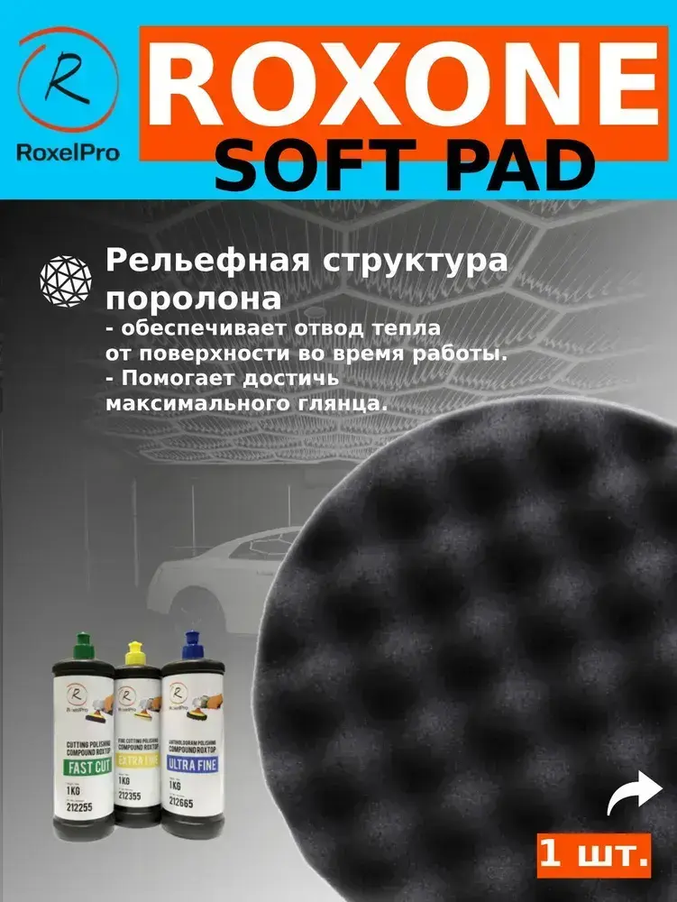 Полировальный круг поролоновый, диаметр: 150х30мм на липучке, мягкий, рифлёный