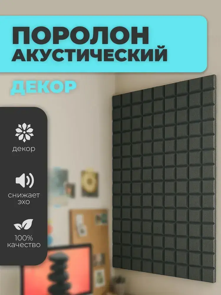 Поролон акустический 30x2000x1000 мм, темно-серый, ППУ SPG2236
