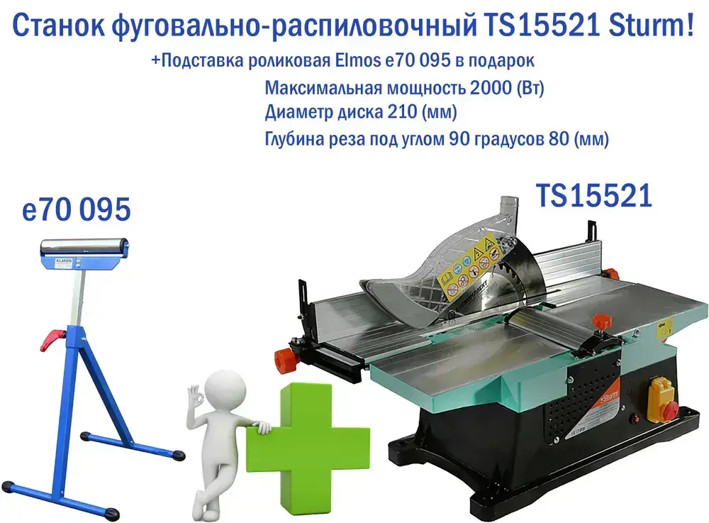 Портативный деревообрабатывающий станок Sturm! 2 в 1, циркулярная пила и фуганок, TS15521 с подставкой Elmos e70 095