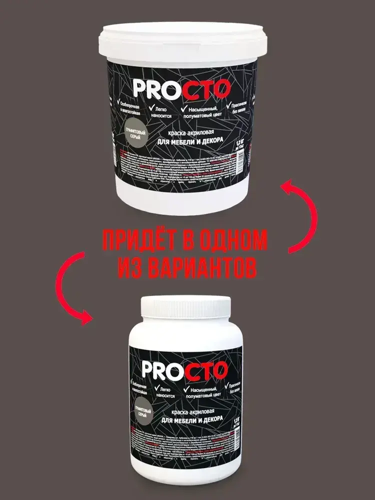PROCTO Краска для мебели и дерева без запаха графитовый серый 1.2кг