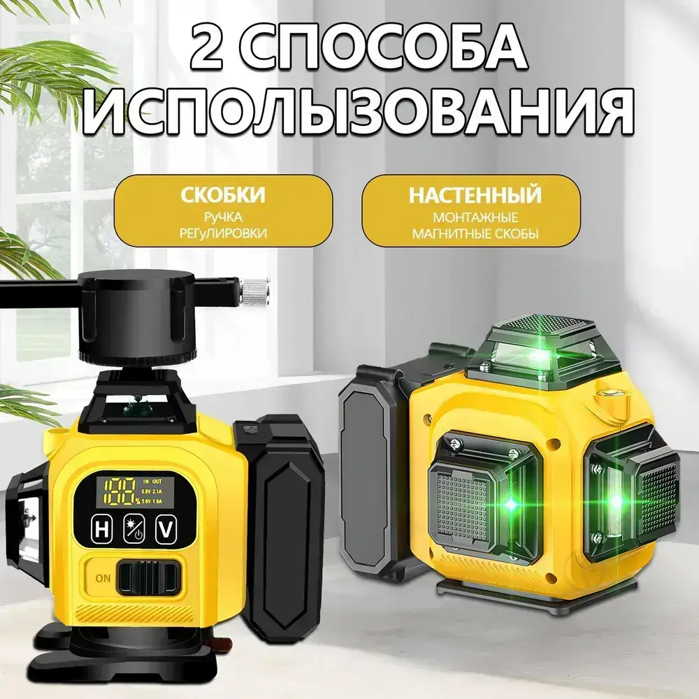 Профессиональный лазерный уровень 4D со штативом, зеленый луч дальность 50м, 16 лучей 360 градусов, самовыравнивание, кейс, пульт, откалиброван