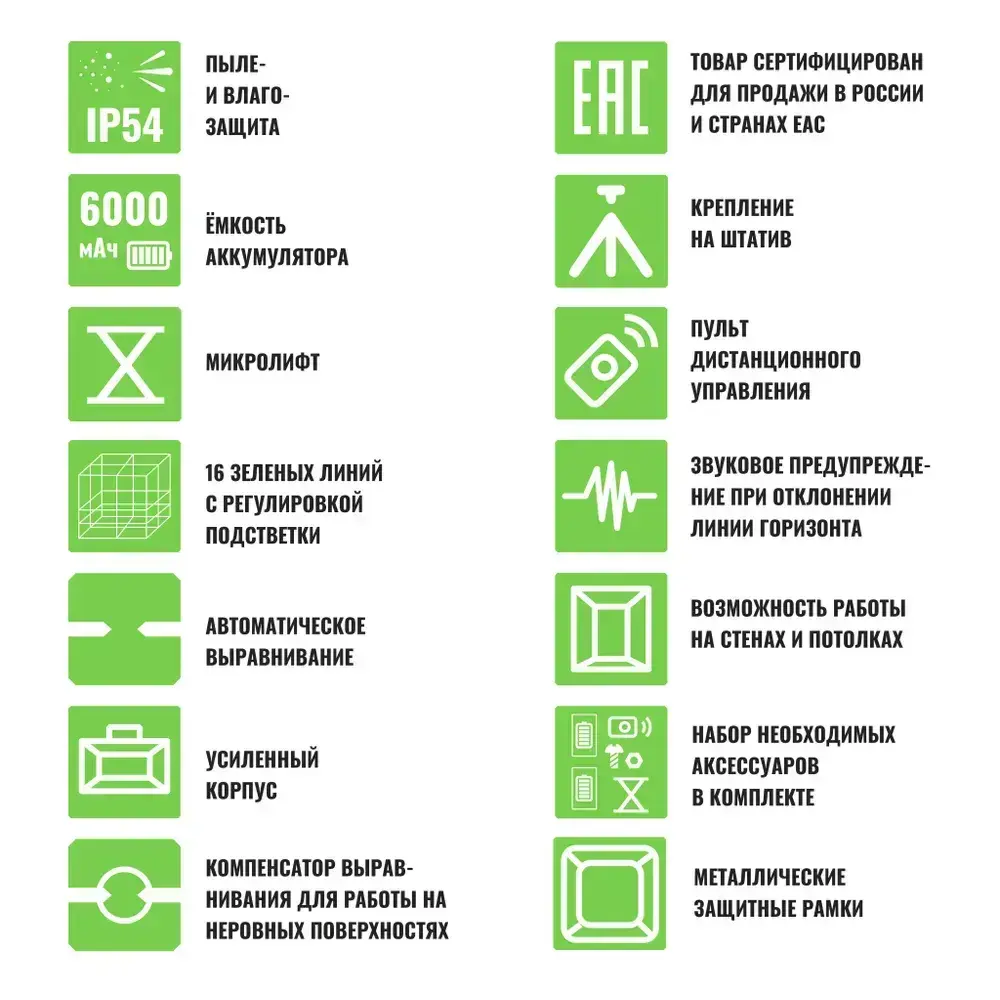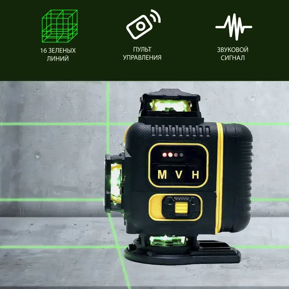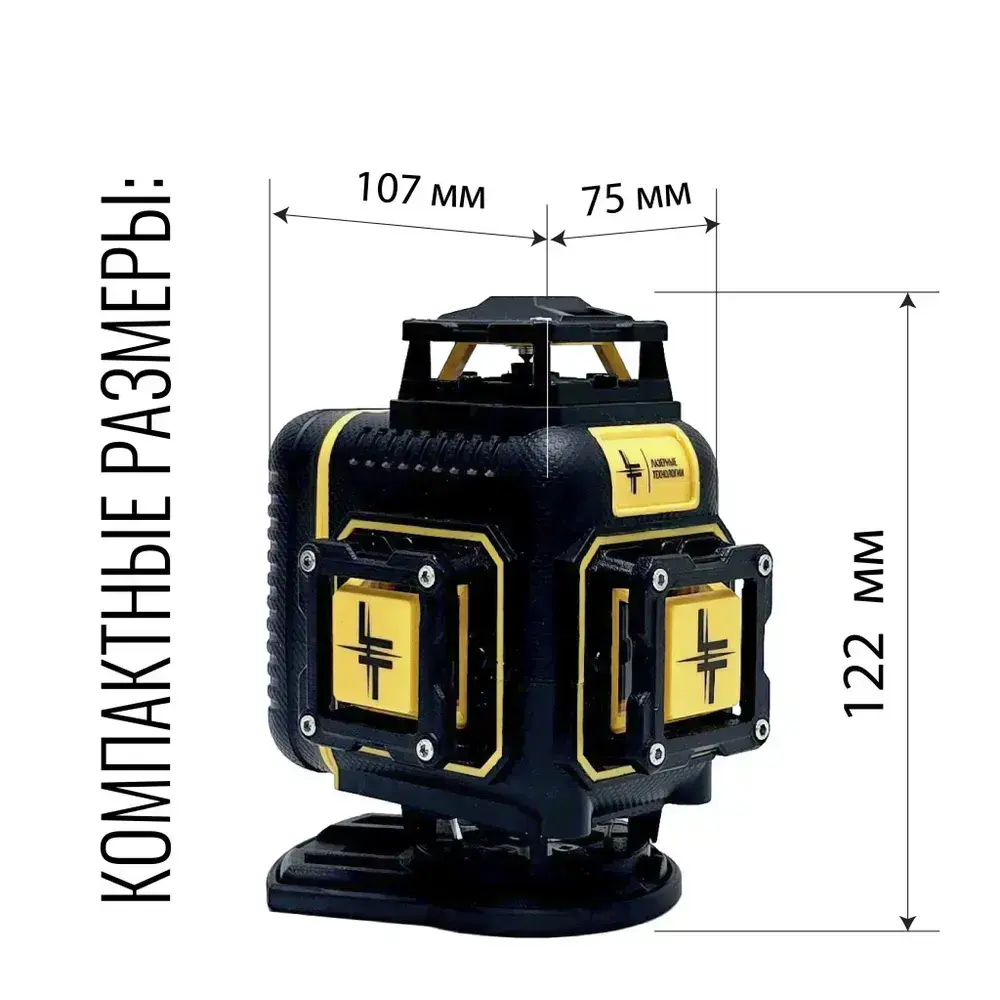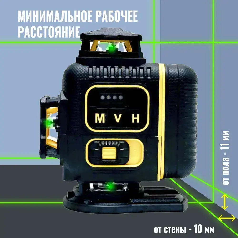 Профессиональный Лазерный уровень (нивелир) LT серии F 16 линий 4D в резиновом корпусе с металлическими бамперами на окошках, С ЯПОНСКИМИ СВЕТОДИОДАМИ SHARP + Тренога 1 метр.