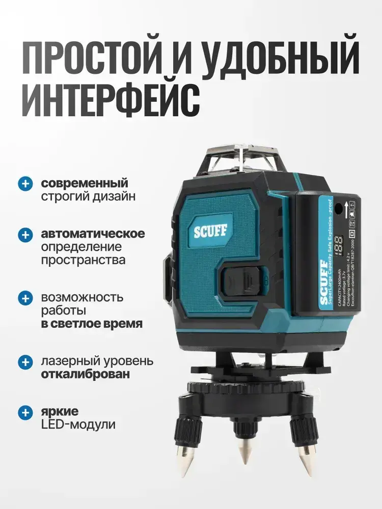 Профессиональный лазерный уровень нивелир SCUFF 4D/16 линий