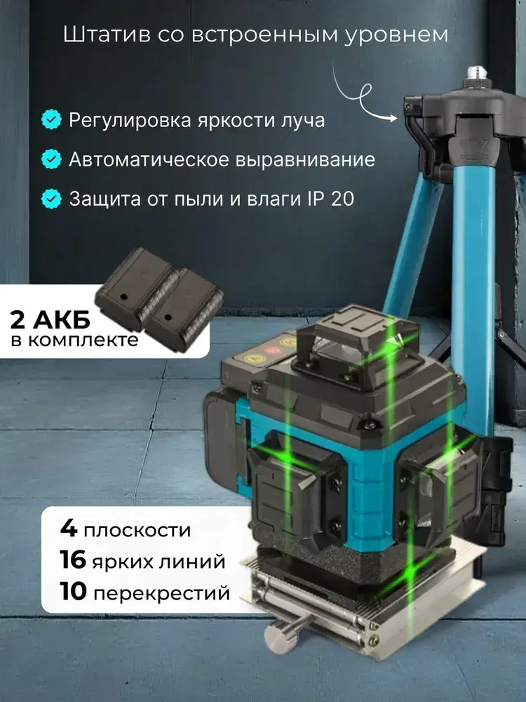 Профессиональный лазерный уровень самовыравнивающийся строительный 360 4D Нивелир Уровень лазерный, 16 лучей с пультом управления и штативом, Зеленый луч 360 градусов