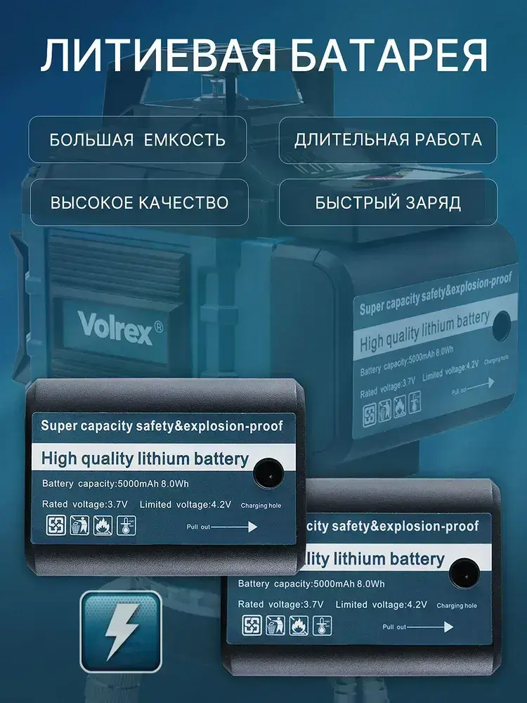 Профессиональный лазерный уровень строительный Volrex 360 3D 4D / Нивелир, 16 лучей с пультом управления и 2 Акб, Зеленый луч 360 градус Volrex