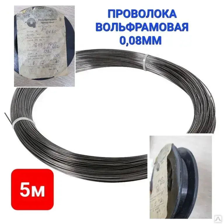 Проволока вольфрамовая 0.08мм ВА1А моток 5м вольфрам