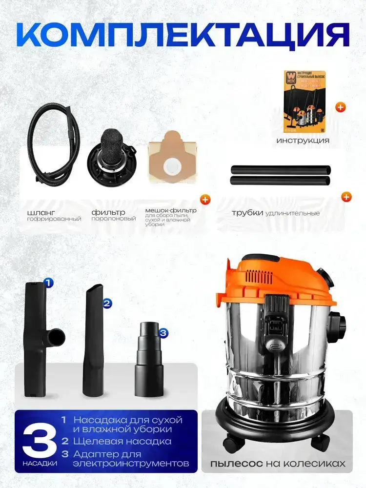 Пылесос строительный 20 л., 1200 Вт