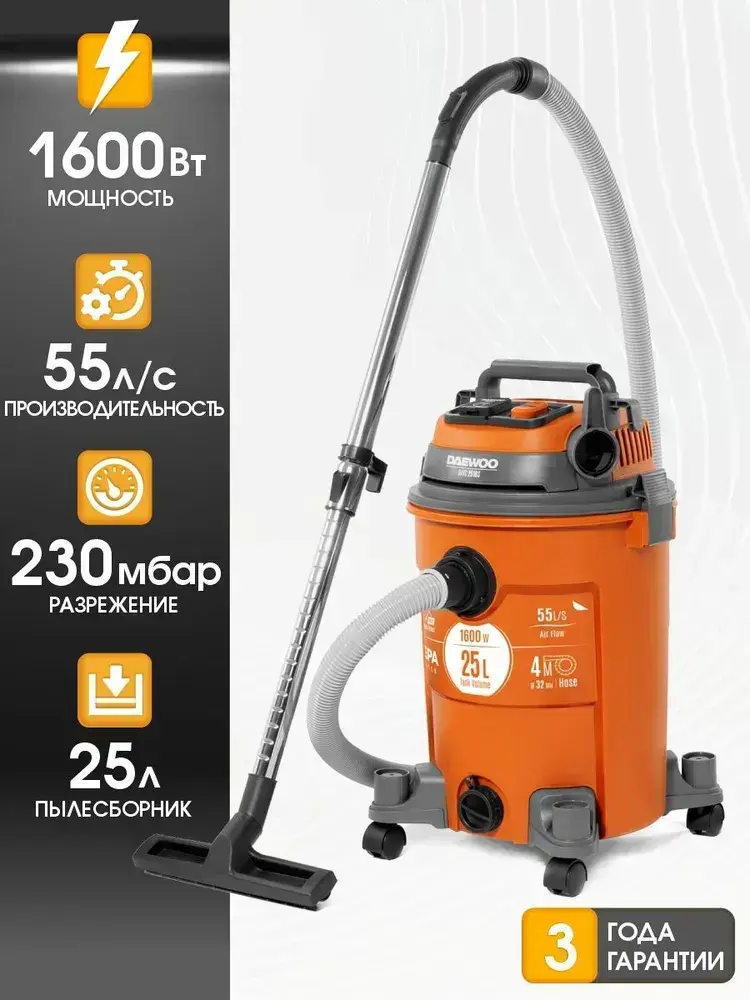 Пылесос строительный DAEWOO DAVC 2516S 1.6 кВт, 25 л
