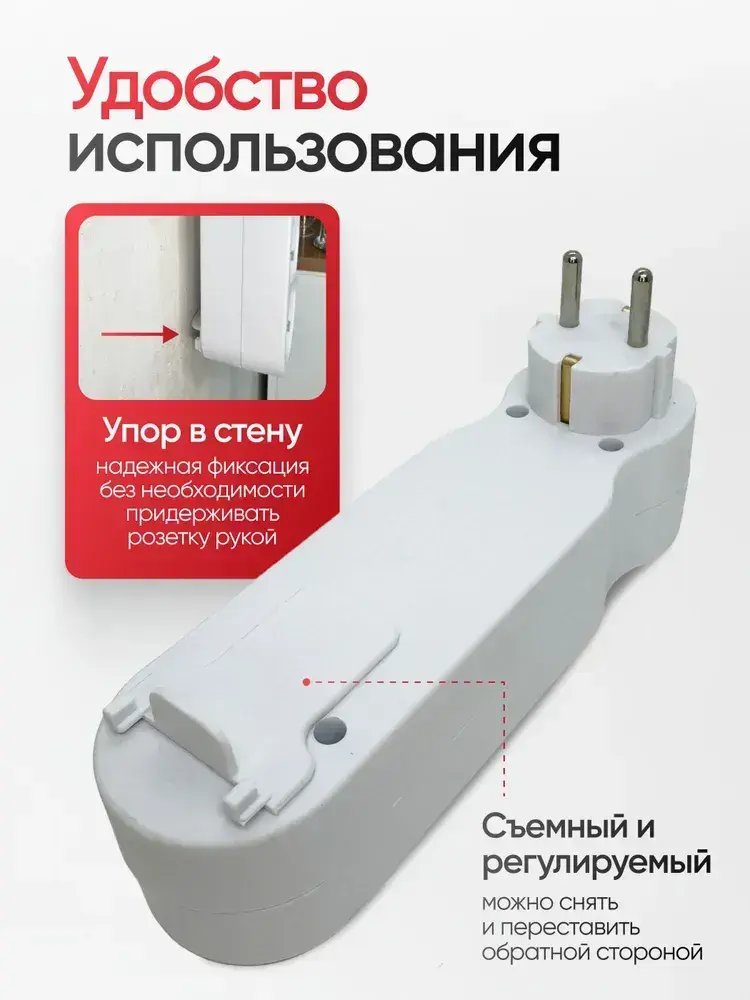 Разветвитель для розетки, тройник с заземлением на 3 розетки