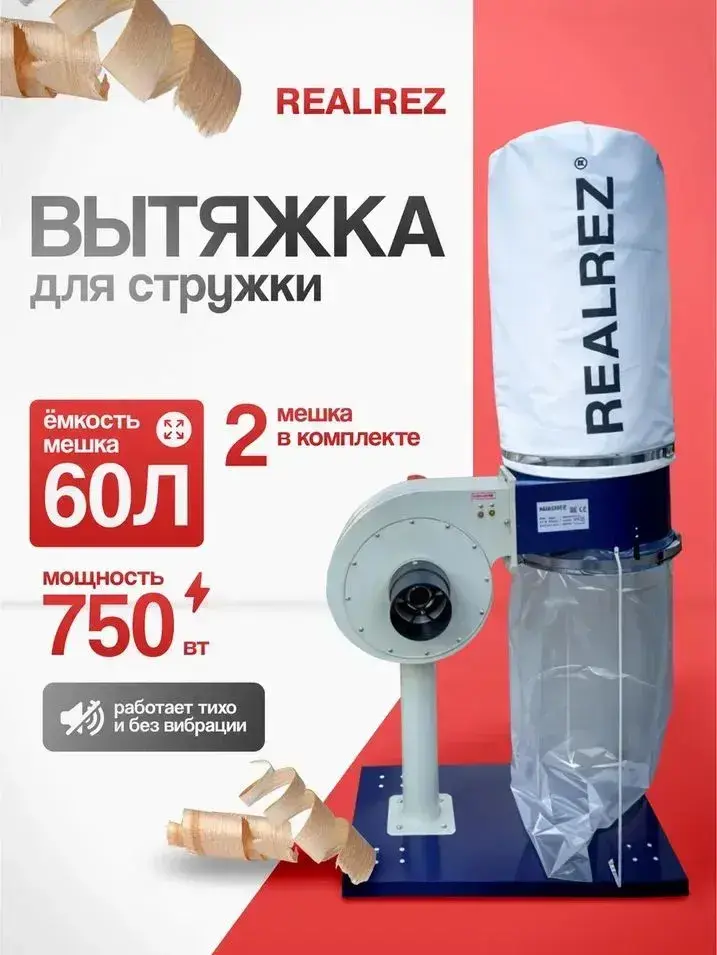 Realrez Промышленный пылесос 60 л, 750 Вт
