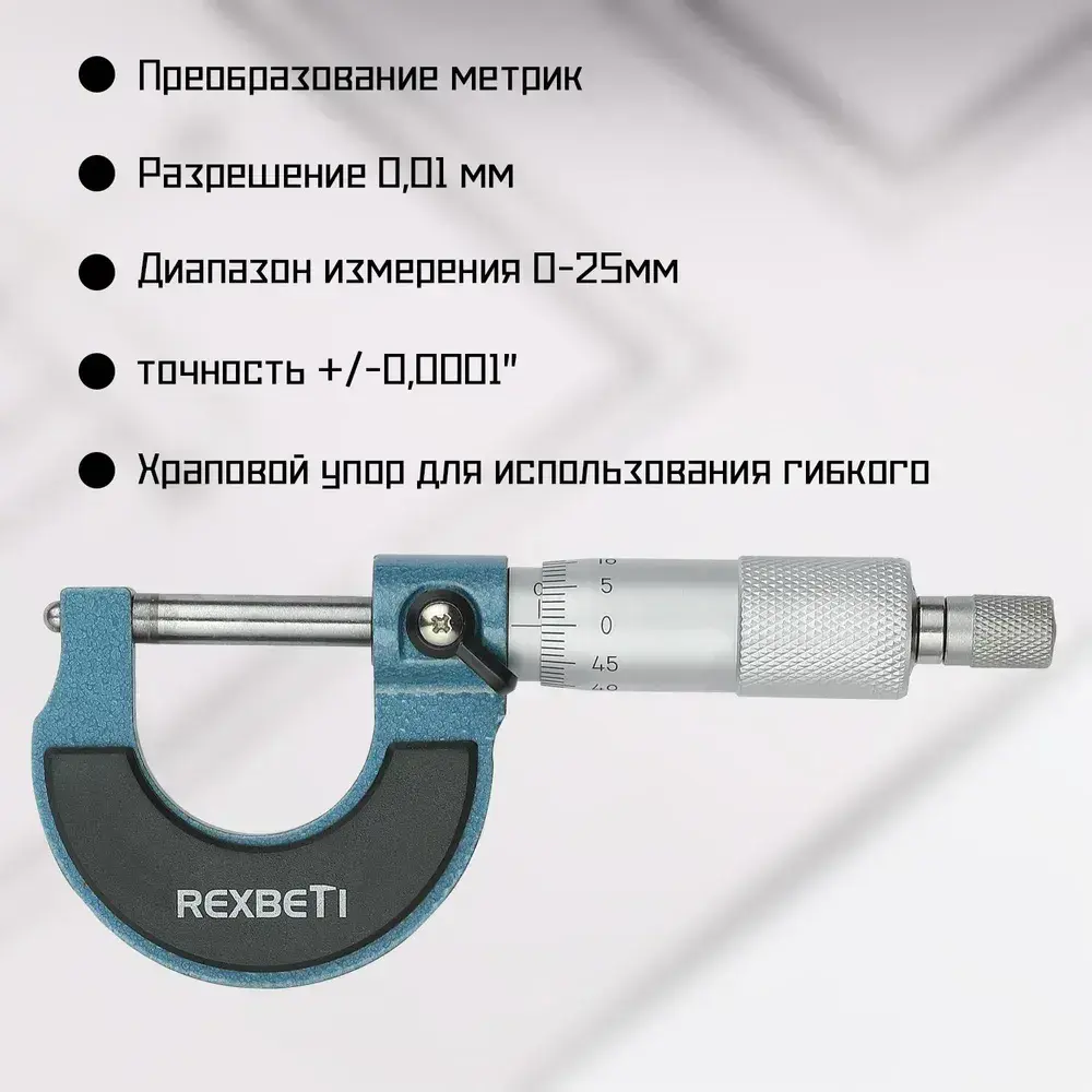 REXBETI Микрометр нониусный 0-25 мм, 0,01 мм