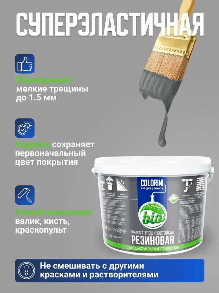 Резиновая краска COLORINI Bio 1.3 кг Серая