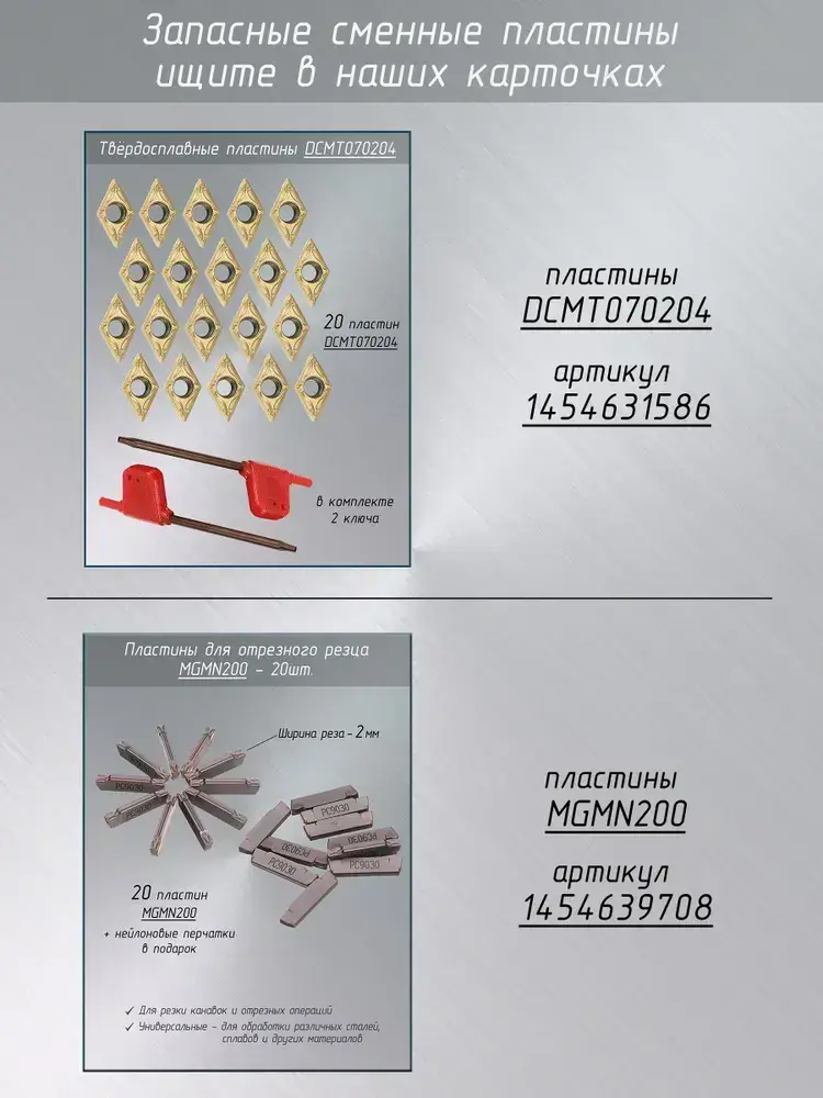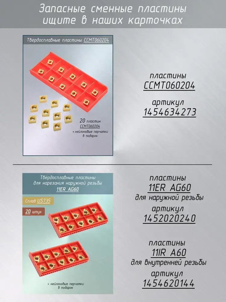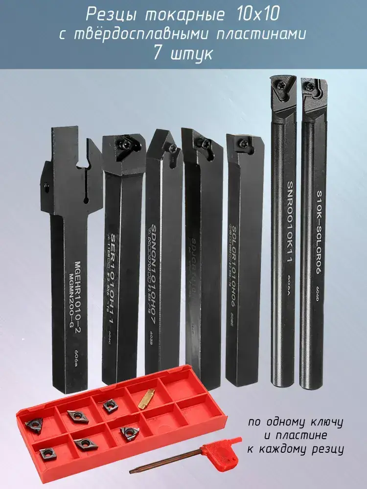 Резцы токарные 10х10 со сменными пластинами / Набор из 7 резцов по металлу