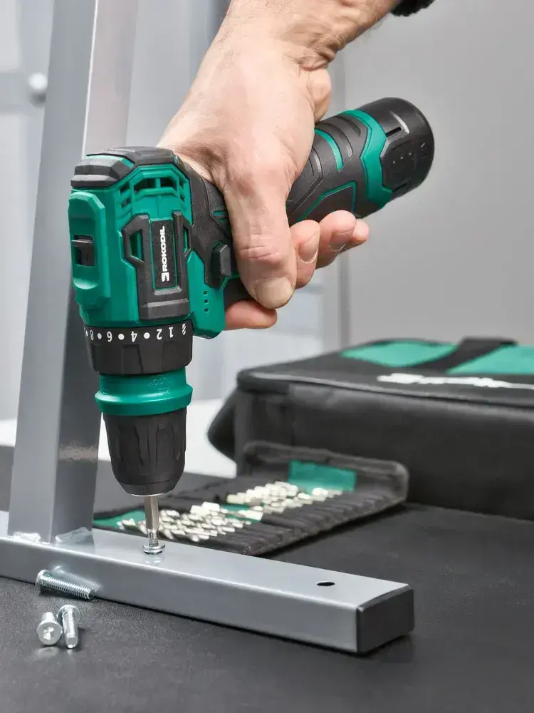 ROKODIL / Бесщеточный аккумуляторный шуруповерт 12В 36Нм 1АКБ / Rokodil Twist 2 Air (set 1), блокировка шпинделя, металлический патрон, кейс, оснастка в комплекте