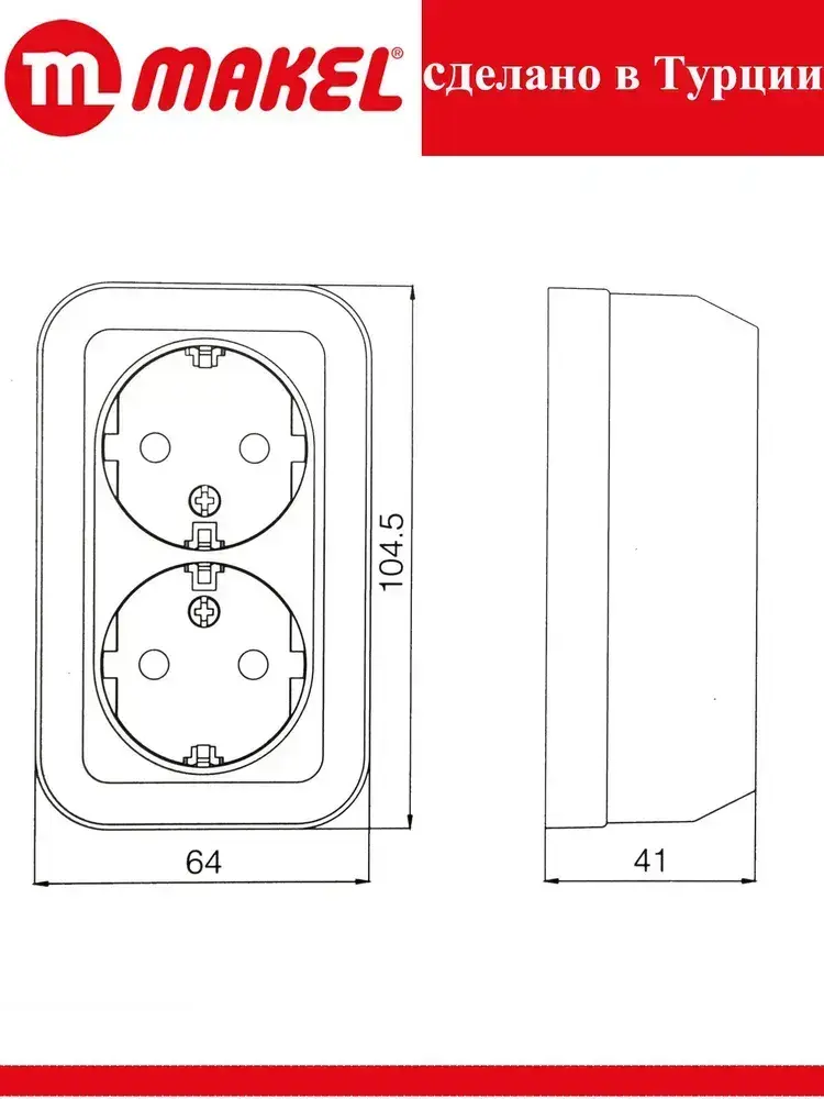 Розетка двойная накладная с заземлением белая (45182) MAKEL