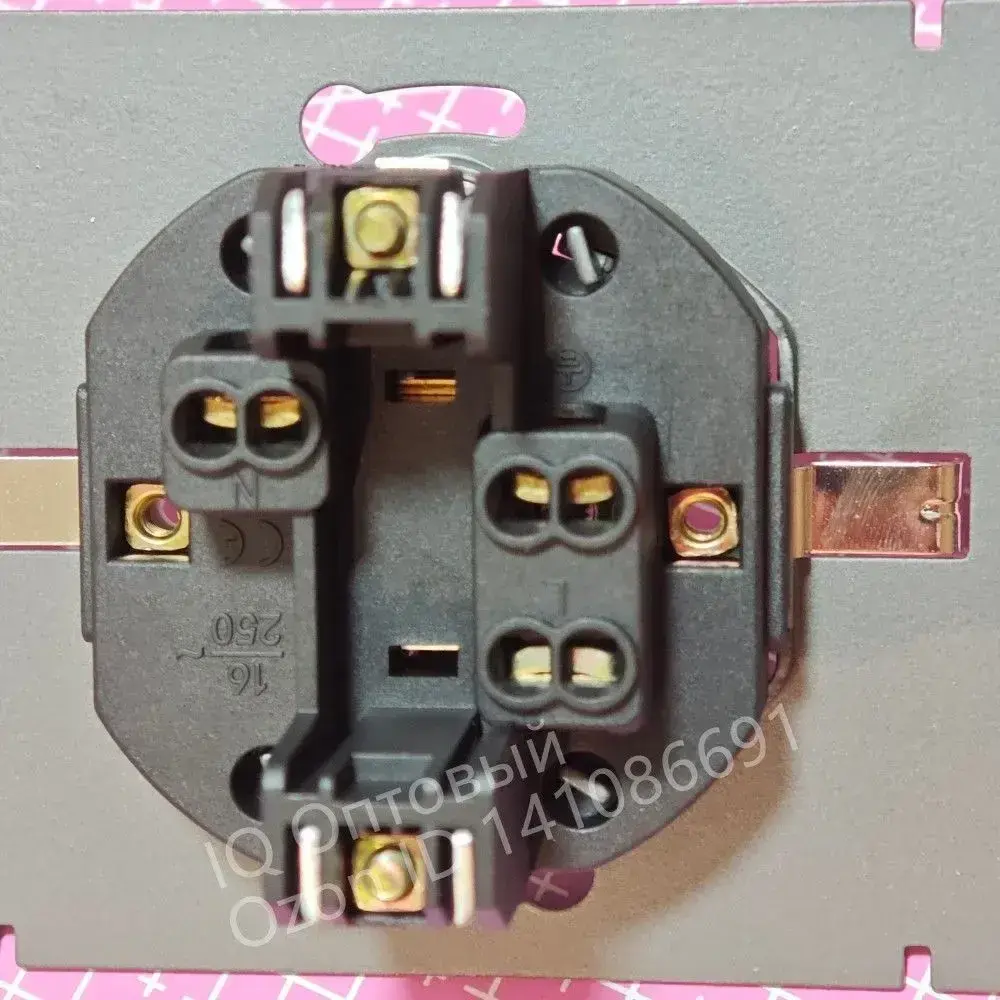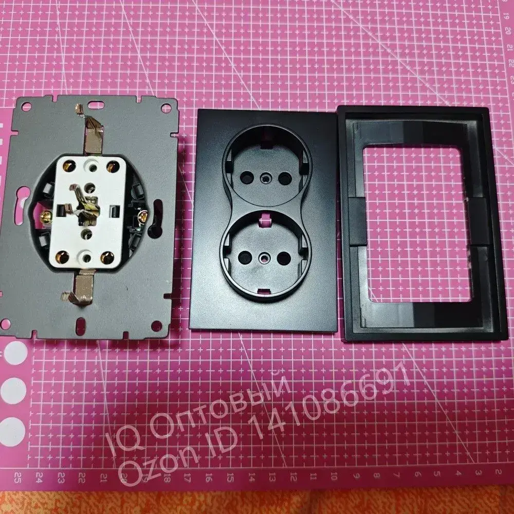 Розетка двойная с рамкой с заземлением встраиваемая 1 шт,черный