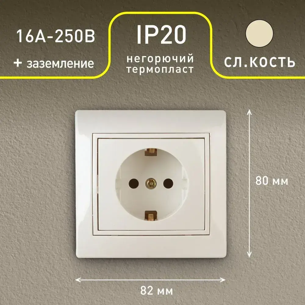 Розетка Intro Plano 1-202-02 с заземлением 2P+E Schuko 16А-250В IP20 скрытой установки слоновая кость