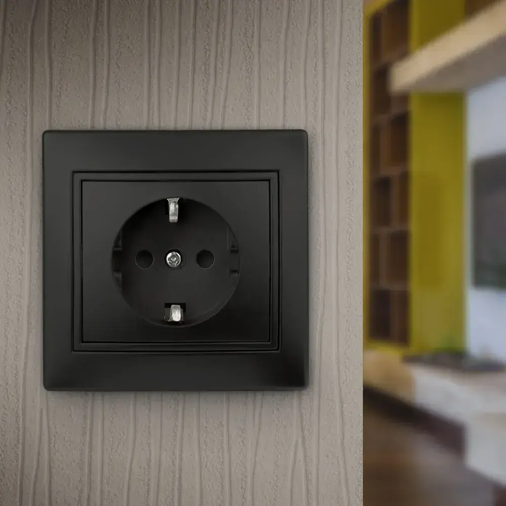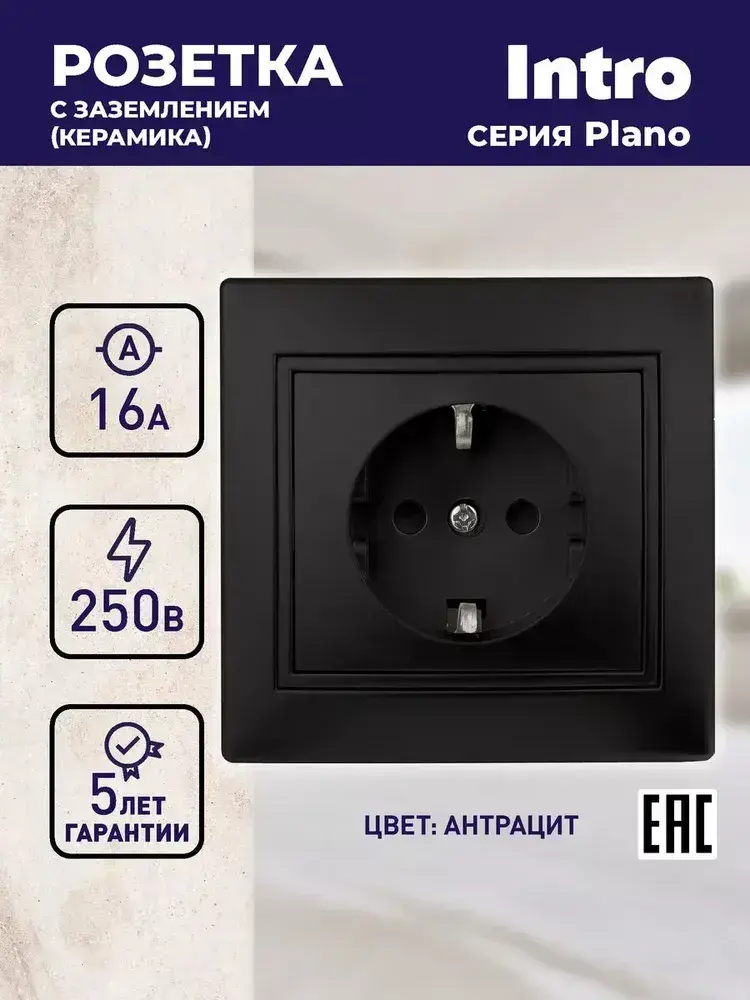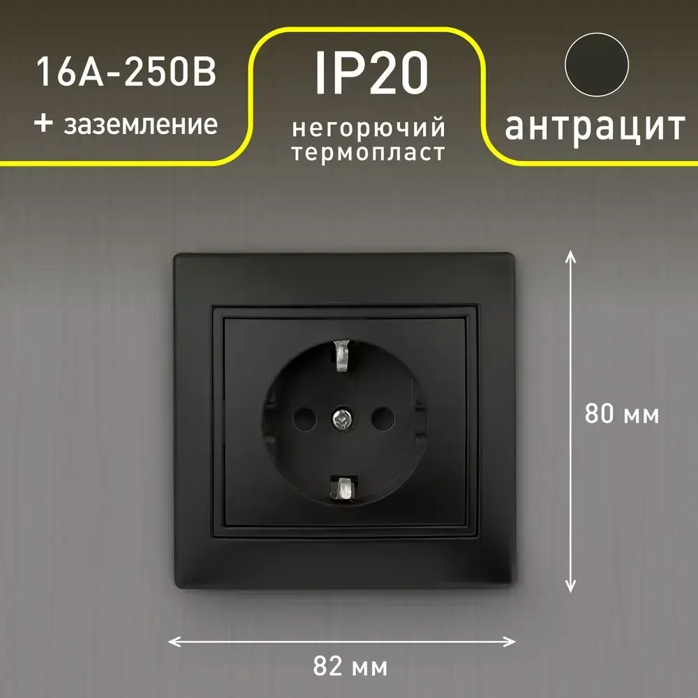 Розетка Intro Plano 1-202-05 с заземлением 2P+E Schuko 16А-250В IP20 скрытой установки черный