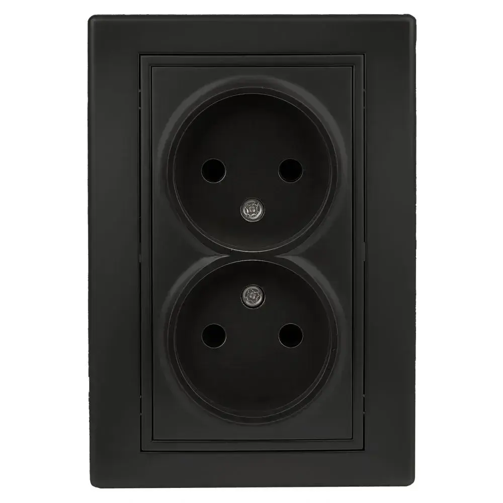 Розетка Intro Plano 1-204-05 без заземления двойная 2х2P 16А-250В IP20 скрытой установки черный