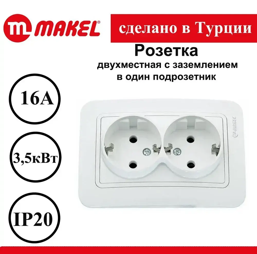 Розетка Makel Lilium двойная белая c заземлением 70082